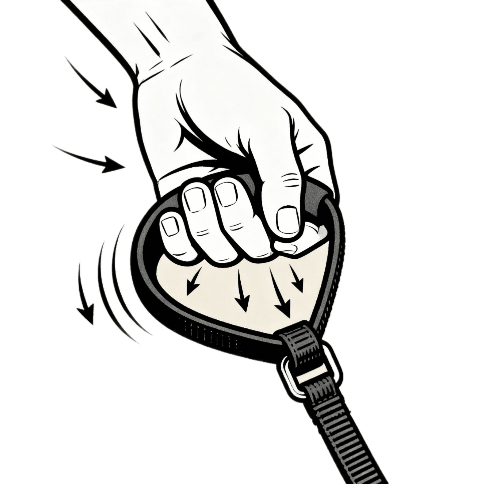 The fingers twitch is about feel, not force. When your dog begins to move ahead and the lead starts to tighten, use a subtle, quick movement of your fingerss. It’s simply a light cue that says, “Come back to me.” The second they respond by easing the tension or looking in your direction, relax the lead immediately. Follow up with calm praise, a treat, or a quick play moment beside you.