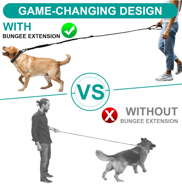 - The presence of the bungee lead introduces light, elastic feedback instead of rigid pressure. The dog feels gentle